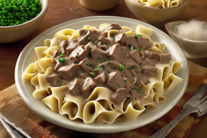 This savory Swiss steak dish combines tender beef with rich flavors and is served over comforting egg noodles, making for a satisfying meal perfect for any night of the week.