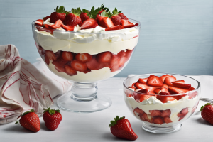 A delightful trifle that combines the rich flavors of coffee and the sweetness of strawberries, layered with a creamy mixture for a perfect dessert.